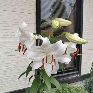 今日は、梅雨明けかな? と思っていたけど、昼から雷雨でした⛈️🌧️ そんなに長い時間ではなかったけど、不安定な天気でした。 明日はどうかな? いくつかあるカサブランカが咲き始めた⤴️⤴️ これもカサブランカだと思っていたら… 八重咲きでした😲🤣🤣 昨年秋に球根植えてたのを忘れてた~💦 20センチ程ある大輪八重咲き♡ オリエンタルリリー ハンバー** 純白の花弁に緑色の縁取り 草丈:100cm前後