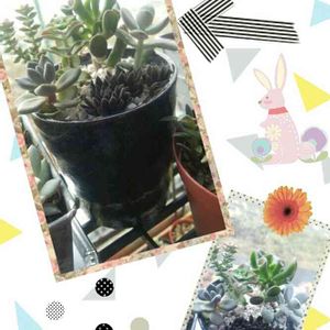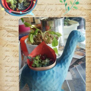 恐竜さんの鉢の為に寄せ植え(笑) 葉挿しのチビ苗とセダムさんをちまちま…。 大雑把だから上手く出来ないなぁ(^_^;)
