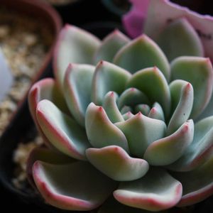 少し前気温が上がった頃 紅葉が褪せたなと思っていたアマビレ 今日また可愛い紅葉😊 2枚目は棚の奥でミドリンだった葉挿しっ子のアマビレ 手前に出したら 爪がピンクになってます そろそろおひとり様かな? そのまま鉢増しかな?