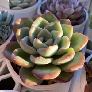 モンローとアマビレが色付いてきました😊2枚目は半年前のものです! 夏に調子を崩したアマビレは葉っぱが何枚か駄目になって多頭になってしまったけど、何とか持ち直しました😌
