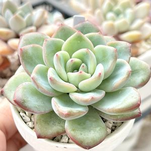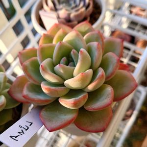 紅くならない子🏷️もいいですね! 葉に少し揺れがでてきて可愛い♡ これ以上は大きくならないで欲しい💦 photo2は24.1.23投稿でphoto5になるはずの子▶️一番手前の子、普段アエオニウムに使っている肥よくな用土に植ってる。 葉が他より大きくて立派な感じ、あと葉数が少ない、枯れ葉も他より少ない.... photo3の緑色の子たちは水持ちが良い用土に植え替えて少し元気になってきた! 紅葉中の子は植え替え無し、根詰まり中。 この内2ポットにIB化成やってみる! 私多肉さんにIBは初めて!ワクワクする(^^)