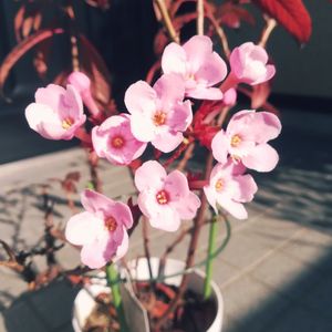 におい桜(ルクリア)が満開です。 ほのかに桜の匂いが香ります。 ちりめん細工の様な花です🌸 冬は室内で管理します。 寒くなってきたので、明るい色を見ていると、気持ちが暖かくなります💗