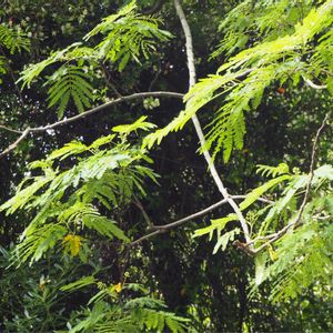 葉っぱを開いて 合歓木 元気にお目覚め 朝の散歩道 この写真は一部分ですが、全体には沢山の花が咲いていました。