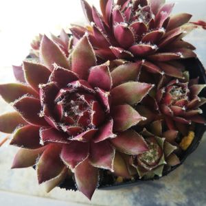 お名前通り赤くて可愛い センペルビウム・ルージュジョイスさん😺💕 爆弾低気圧💣️で 強風中ですが 風が止んだ隙に🤳