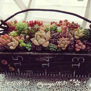 .。゚+.(,,・ω・,,)ノ。+ コンチャ!! 寒くなりましたね〜 冬支度の準備 頑張ってます(。˃ ᵕ ˂ )b 地植えの多肉さんたちを 鉢上げしたり 置き場所の確保で 寄せ植えをプランターに 植え替えしたり… きっと 外に出していられるのも 今月いっぱいだと 思うので 室内移動しないといけないし やる事いっぱい(≧∇≦) 昨日はスカスカになった 寄せ植えに パープルヘイズプラスして モリモリにしました♪♪ 可愛くなってくれて 気分もスッキリです✨