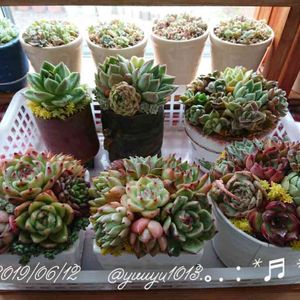 ☻⋆˚✩Ꮹ∞ძ ოǫɾлілϧ ༘*ೄ˚☻ 土曜日の強風で ひっくり返った木箱に 入っていた お一人様の多肉さんたち 60鉢の植替え終了〜♡ 半分 名前が不明になったけど 可愛く成長しているので 寄せ植えしませんでした(*´艸`)♡ 週末はメネデールで 水やりして 元気になってもらいたいと 思います💓 今日もお仕事 頑張ろー٩(ˊᗜˋ*)و