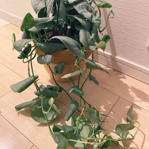 スキンダプサス オルモストシルバー 我が巣もオルモストしました👌🏻 ミントの板ガムみたいな色ですね 3号サイズを他県の園芸店の ネットショップで購入しましたが 段ボールの中でも枯れずに立派な葉っぱで 届いてくれて水やり係はご機嫌です