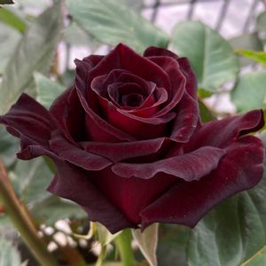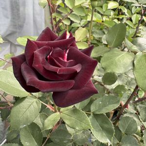 パパメイアン 庭の薔薇🌹🌿で 1番早くに咲いたのは 黒薔薇の名花 花径15センチにもなる大輪です ビロードのような花びらや ダマスク・モダンの強香が 魅力的です 1963年 フランス作出 メイアン社 世界の薔薇殿堂入りの 18種類の内のひとつです 大病性に弱く 育てるのは難しいです 最近の薔薇は 病害虫に強く品質改善されてきて育て易くなってます