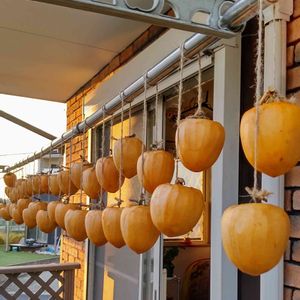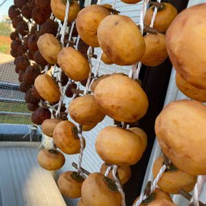 今年初めてチャレンジした、甘柿の次郎柿で作る干し柿、吊るし始めて2週間、完成〜😃。 甘柿がたくさん採れて消費に困ったら、これでもイケる✌️。