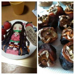 おはようございます。 急に寒波が来て寒いですね。 干し柿が食べたくて、渋柿を買って作って見ました。 ちょっと干しすぎたのか、黒っぽいね。 でもおいしかった。 先月の孫の誕生日、今人気の鬼滅の刃のねずこちゃん💕ケーキ