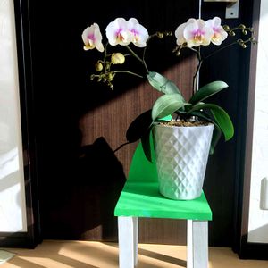 娘の塾で捨てられていた蘭です。 今年も咲いて来ました😁 下の椅子は娘の美術の作品です。