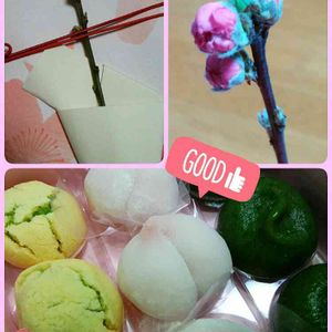 娘が買ってきてくれた和菓子 たねやの『ひなの節 春三色』💕 小さな桃の枝がついてます✨ 早速、一輪挿しに入れました🌼 蓋を開けたら………✨ あら(*'▽'*)可愛いお尻🍑 ナイスタイミング👍👍👍 🏷オケツの日参加させていただきま~す( ´艸`)💕 桃のジュレと白あんの柔らかいオケツ…じゃない、お餅(笑) みごとな可愛いオケツに出会えて感動しました(≧∇≦)b