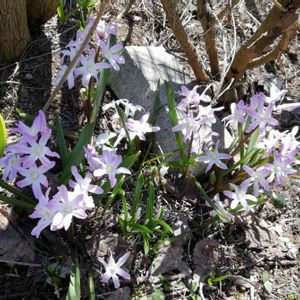 チオノドクサが咲き始めました。 春の2番目に咲く花です。 次は何かなぁ? ヒヤシンスの蕾も出てきました。チューリップ🌷はまだかかりそう。ムスカリさんももう少し。 北海道の春は、次々球根の花が咲きだします。🌱🌱🌱