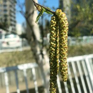 こんにちは。 北海道にはこの時期、桜🌸の他に 開花する樹木の花があります。 それはこちらの白樺の花。 花と言うより花序でしょうか。 芽吹きと同時進行で開花します。 最初は上向きに咲いてますが 花粉の飛散が始まる数日前から 大きくなりながら このように垂れ下がってきます。 これが花粉飛散の合図のような 感じでしょうか… 今年も白樺花粉の時期がやってきました。 ( ´ ▽ ` )