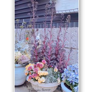 塔立ち半端なくなった、ブラック葉牡丹を使った、リースの植物たち。 形が崩れてきたため、鉢に寄せ植えして組み直してみました!