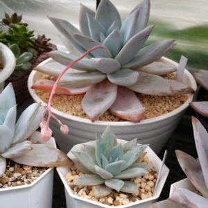 かわいこちゃんズ❤️ part 31 時計回りで メキシカンジャイアント (Sep'21 cocoroa) ラウレンシス (Dec'19 sweet) キャラリアン (Sep'21 cocoroa) プリマベーラ (Nov'21 ヤフオク) ミナ (Nov'21 ヤフオク) Suryon (Sep'20 松井田) アメイジンググレイス (Dec'20 sweet) 久しぶりのかわいこちゃんズの紹介になります🤗♡ メキジャイ君は大きく育ててみたいのですが、夏は下葉がぐじゅぐじゅにジュれることもあって、なかなか思うようにはいきません(^◇^;)💧 これからでも鉢を大きくしてみようかな🙄 ラウレンシスはうちに来て2年以上経ちますが、やっと姿、色が綺麗になりました✨✨ ミルクティーのような色合いが可愛いです❣️ Suryonさんの可愛らしさがこのpicからはなかなか伝わらないかもですが、コロンとした姿がラブリーなんですよ🤗♡ 紅葉がほんの少し残ってます❣️ アメイジンググレイスさんは王道の美しさ✨✨ 大事にしていた4.5号鉢の大株は成長点が行方不明になり、形が崩れて下葉がジュれたのですが、あちこちから子株がバンバン出てきて凄いことになっております😅 外すのが面倒なので放ってありますが、どうにかしないとね(^◇^;) こちらは別のショップから迎えた子ですが、大きくしないで管理しております。 でもそろそろ鉢パンです😅