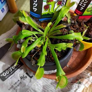 以前にも投稿したネペンテスラジャです。(角度も同じぐらい) 葉っぱの展開が早く夏の間も全く愚図らなかった優等生です。 購入から一年弱たちました。少し大きなったかな?最近はそんなに頻繁に見かけないので気長に大事に育てていきたいですね😊
