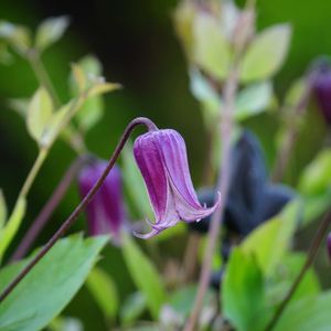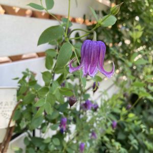 今年2回目の開花期 クレマチス クリオネ ゆらゆらベル型のお花が揺れています 暑さ、意外と平気なのかも