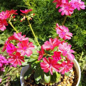 🏷️19日はピンクの日!にもう1枚参加します🥰🏷️乙女色クラブにも参加させて頂きます❣️ 🔎高山植物レウイシア・コチレドン💕は多肉植物のように見える草姿から造花のような華やかな花を咲かせる多年草だそうです。自生するものは主に北アメリカのロッキー山脈北西部からカリフォルニアにかけての山地の岩場などに多く見られるそうです❣️