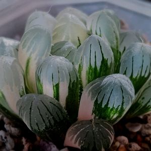 ●ススキノキ科 ツルボラン亜科 ●ハオルチア属 ●海ぶどう錦😻😻 環境が変わったせいか、どの錦のハオルチアもだいたい色の変化がみられます。☝️🤓