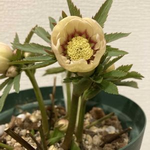 多分 一昨年苗でお迎えして昨年初開花した 堀切園さんのクリスマスローズ ウィンターシンフォニー ddアプリコット 色も形も好き♡ 手持ち開花 25-7 ( お迎え 23-苗 )