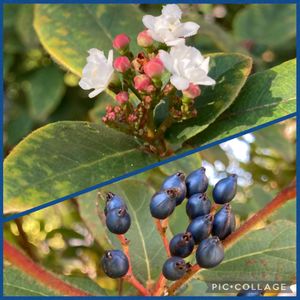 こんばんは❣️ 福岡市動植物ですが、こちらは外です! ビバーナムティムス お花と実もなってました 実は、綺麗な色でした✨ (ジョウリョクガマズミ) 撮りだめしてますねー😅