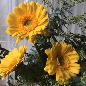 キュンキュン乙女倶楽部㊗️四周年 🎉おめでとうございます🎉 家の中の重た〜い空気を変えたくて、 ビタミンカラーを飾りました🌼🧡💛 今は硬い蕾のミモザが満開になる頃、 みんなが笑顔でいられますように・・ ・・・誰もが、笑顔に‼️💕