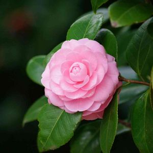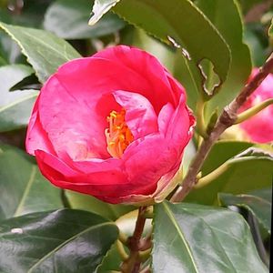 裏庭に鮮やかなピンク色のツバキが咲き始めてきました