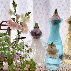 こんにちは☺ さっむーい脱衣所の窓辺より゚.*・。゚♬*゜ 我が家のヒヤシンス✿*:・゚ 雪で折れてしまったキンギョソウと• • • ひとつだけ冷蔵庫の野菜室に一ヶ月いた子がいます♪♪♪ 正解は青いポットの子です☺ 差は?• • •良く分かりません😄 そして去年4回お花を咲かせた子もいます😊 これはすぐ分かりますよね〜😄 今年はどうかな〜一回でも咲いてくれると嬉しいです♫♫ 家で保管してて土に植えるの忘れてたのでお花は見れないと思いますけど💦 先に芽が出た状態でメネデールで2日後、根は出てきました✧*。‧✧̣̥̇‧ 今日もお疲れ様です(❁ᴗ͈ˬᴗ͈)っ🍵