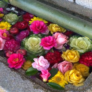 おはようございます☀ キュンキュン乙女倶楽部、四周年おめでとうございます🎉🎊 毎月お詣りする神社の花手水。 バラ、葉牡丹、ガーベラ、山茶花(椿?)、姫林檎。 綺麗でしょ😍 造花かと思ったくらい鮮やかでした。 コロナ禍は、手水舎が閉鎖になってますが、花手水癒されますね😍 昨日、シモバシラのみどりのまとめを作りました。 簡単なまとめですが、珍しいので、ぜひ見てみてくださいね!