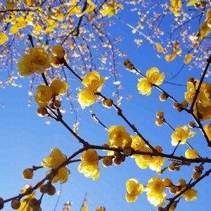 一昨日の強風で葉っぱがだいぶ落ちて。 蕾がたくさん青空に散らばってるよう。 キュンキュン乙女倶楽部 四周年おめでとう🎂🎊 @もんもんチャン、いつもありがと💚 新羽西方寺にて