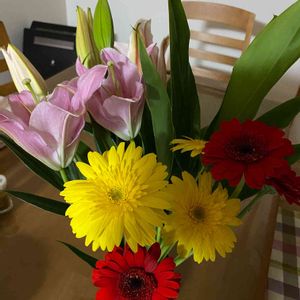 庭や畑にお花無いので、仏花買ってきたよ 今日は、お義父さんの15回目の命日。 私の好きな花を選びました🤣🤣🤣 でもお墓は、もっと地味なお花にしたよ