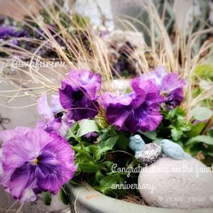 お天気で穏やかな昼下がり😁 ロイヤルブルーのパンジーちゃんが 良く映えます😃 キュンキュン乙女倶楽部4周年 おめでとうございます🎉✨😆✨🎊 これからもよろしくお願いします❣️