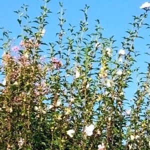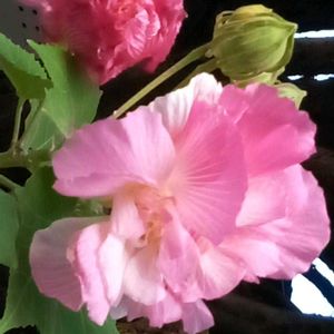 🏷️今日のお花 🏷️木曜日は木に咲く花 🏷️木曜日は桃色 ムクゲ 木槿 ① ご近所散歩で今日pic 我が家と同じお花です ② 我が家で今日pic 高くなりもう切り花に しにくくなりました ③④⑤過去picです 撮り貯めpic 痛めている指先当たり 沢山消滅 悲しい😭 このお花も最盛期撮っていたのに、、、