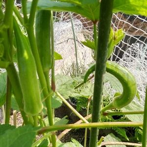 8月31日は語呂合わせで 「野菜の日」 です ① オクラ ②③トマト ④ ピーナツ モンシロチョウ出してあげ ようとネット持ちあげるも どんどん奥へ ⑤ 初盆のお飾り