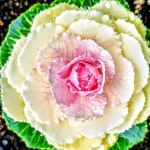 ご近所散歩しました。 夜中に降った雨粒をポツポツ付けてるミニハボタンが可愛かったです。 ⋯ハボタンも美味しいか美味しくないかは別にして、食べられるそうです⋯