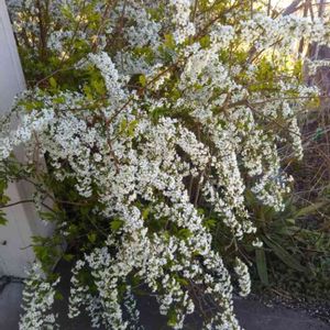 ご近所散歩② ユキヤナギ 真っ白いのが印象的な花。 満開になると更に見応え有りますね☺️ ピンクユキヤナギという種類が有るとも聞きました。