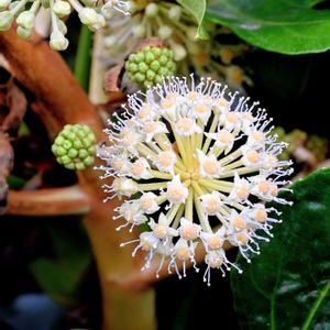 道端にヤツデの花が咲いていました。 蘂が電気⚡️のビリビリみたいな😆 ヤツデのお花は雄性期と雌性期があるそうです。 ⋯今はどっち⁉️