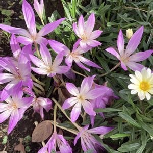 街路樹(花水木)の根元の 🩷コルチカム(イヌサフラン)と 🤍ガザニア 可愛く咲いてました💕💕💛