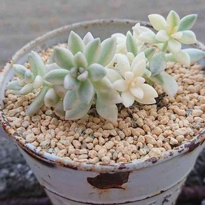 おっはよーんฅ( ̳• ·̫ • ̳ฅ) 去年の夏にお迎えした子です🌴🏖🌈 まだ、多肉ちゃまの事を何にもしらず…… だだただ真っ白で綺麗😍🌡 ってだけでお迎えをしました((°°;) 直射日光が苦手だよ🧡の 佐伯園芸さんの言葉をひたすらに守ってまーす(*´ェ`*)ウホッ❤ やはり、徒長気味で、 普通の姫秋麗みたいにはいかないなぁって思いながらも チョンパしてポイꉂ٩(^ꇴ^๑)ว ほったら、まぁー🤩 全部根付いた(,,>ω<,,)💕🍃✌️ 今のところ葉挿しの発芽率も100%🙆♀️👍 日にも当たらないから、真っ白な芽がででミドリンが1つもなくなりました( ´罒`*)✧" どーやって光合成するの? これってうぶって状態のやつ? 葉からの栄養補給が難しいので、 土を栄養のあるものと、 ルートン混ぜたものに変えて、 朝日だけ浴びてもらっています… 夏越ししてーっ ((((;゚;Д;゚;))))カタカタカタカタカタカタカタ と、ビビりのnnmがお伝えしました(*´꒳`ノノ゙☆パチパチパチパチ 今日も、楽しくヽ(*´∀`)ノイェ-イ
