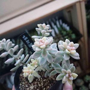 今日は仕事を休んで「アミティエマルシェ」というイベントに行ってきました🎶 るるさんやねぇーさん、他にもたくさんの方々にお会いできて楽しかったです😆🎵 その報告はまた明日🤭 今日は「あけちゃん」さんからいただいた子たちのお披露目をします🤩 左列は今回、右列は以前にいただいた子☝️ ↖️仙人の舞 うちで殖えてるシルバースプーンと交換してとお願いしてました🤭まだ可愛いサイズですけどちゃんと茶色くて将来が楽しみ🎶シルバースプーンも同居させてる兎丼の中のうさぎの前に入ってもらいました💕ここなら冬越しも安心。 ⬅️ピンクフリルス!? 多肉ラボ©里親募集に出してくださったんで里親にさせてもらいました😊❣️ ピンクフリルスという名札でお迎えしたそうなんですけど、フリルがいつまで経っても出ないそうです。確かにうちにいるピンクフリルとは違って見えます。品種を確定できるように頑張って育てま~す🎵 ↙️姫秋麗錦 +αで入れてくださったカワイコちゃん💕 我が家の姫秋麗錦と斑の入り方とか違うかも!?と思ったので別鉢で🤭 ↗️だるま姫秋麗 昨秋にいただいた子。素焼き鉢の2.5号から、今秋プレステラ105に鉢増し✌遮光無しの夏越しでちょっぴり葉焼けさせちゃいましたが、環境も新たに南側フェンスの露天で冬越しさせる予定です😆たっぷり☀☀☀を浴びて、さらにぷっくり育って欲しいです😍 ➡️ホワイトライン 春にいただいた子。セルトレーでの夏越しでしたけど、遮光無しだったのでこの子も葉焼けさせてしまった💦そんなことで一回り小っちゃくなりました😭ゴメンナサイ🙏 でも子どもも生まれているし、素焼き鉢の2号に鉢上げしたので、しっかり挽回します∠( ̄^ ̄) ↘️ジョアンダニエル 春にいただいた子で、素焼き鉢2号で夏越ししました。今秋、素焼き鉢2.5号に鉢増し。この子の色味もこれから深くなるので楽しみ楽しみ😃 ⬇️パープルパールフォンニュルンベルグ 舌を噛みそうな長い名前なので「パープルパール」と呼んでます😂この子も春にいただいて、セルトレーで夏越しして、素焼き鉢2.5号に鉢上げ🎶しばらくは双頭のまま育ててみようと思ってます😆 あけちゃんさん、いつもありがとうございま~す🤗🌱 大切に育てますね💕 そして、なんとか無事に!?夏越しの報告ができて良かったです😆🙌 シルバースプーンは今週送らせてもらいます👍