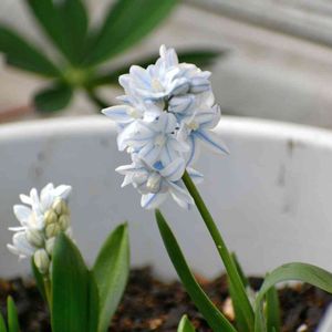 GSで知ったお花、プスキニアを去年植えたら1つだけ咲いてきました😆🎶 寒い中良く耐えたね😌✨