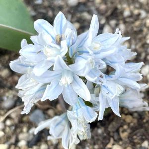 ようやく咲きだしました💓 昨年秋に植えた球根、プスキニア ユリ科 葉の間から蕾が見えてから、ずいぶん待ちました。 7,8センチ、美しい花です