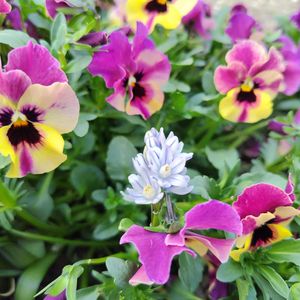 こんばんは🌙*·̩͙𖤐 ①②秋に植えたプスキニアが咲いてましたꕤ*。゚透き通るような花色、ブルー🩵のラインが清楚です🥰 ③中輪ビオラパルルージュ モリモリになってきました♩花弁ふりふりです🌸 ④種まきっ子 その1 イスプリエールのタグが挿してあるけど🧐 ひらひらじゃなくなってる😂 ⑤種まきっ子 その2 小さいながらもポツポツ咲き始めました🥰✨💕