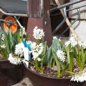 そして今日の庭パトの戦利品は ヒヤシンス とプスキニア! ホワホワした色で可愛い😍💕 どっちも香りが良いので玄関がすごく良い香り〜 パステルイエローのヒヤシンス もあるんだけれどまだ咲いてない\(^o^)/