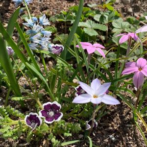 不安な世の中ですが、お庭はいつも通り平和です。 大好きなプスキニアがあちらこちらで咲いています💠 一番乗りはジューンベリーの株元で咲くこの子達。