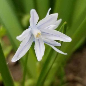 プスキニア リバチノカ 秋植えした球根が開花しました。 球根のパッケージの写真や説明書によると白地にブルーのストライプが入るはずなんだけど、真っ白で咲いています。 (๑¯ω¯๑💧)アレェ…