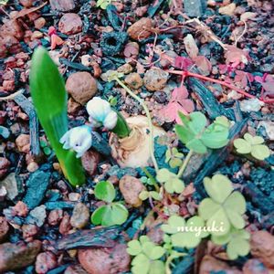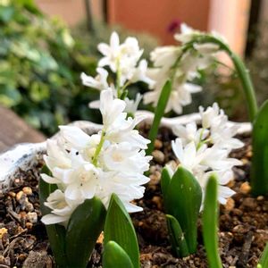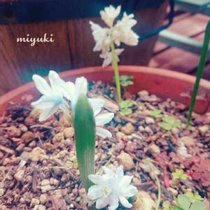 秋植え球根のプスキニアさん✨✨ 純白の小花が可憐に咲いています🥰 球根のカバー写真の水色のストライプは…ありません😅