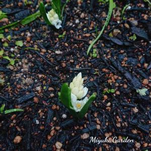 去年植えたプスキニアが出てきました 初めて花を見るので楽しみ!