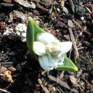 これなんでしょうかい? 球根で冬植えでチューリップの芽より少し遅れて出て来てもう咲こうとしてる4㎝くらいのこなんですけども…
